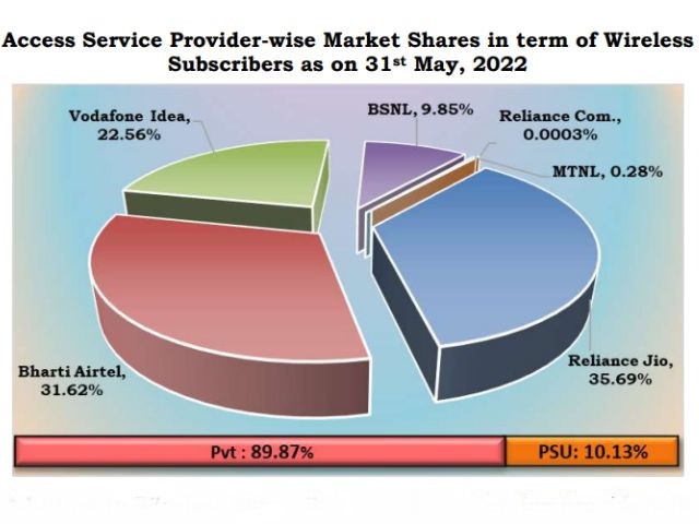 É revelado que Jio conquistou 31.11.417 usuários móveis em maio de 2022, seguido por Airtel com 10.27.881 assinantes. A Vodafone Idea, por outro lado, perdeu 7.59.258 utilizadores no mesmo mês.