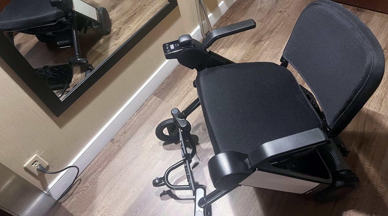 Medindo até 23,8 polegadas em sua maior largura e até 36,8 polegadas de comprimento, é uma cadeira elétrica relativamente compacta. O comprimento encolhe para metade do tamanho quando dobrado, em 18,3 polegadas.