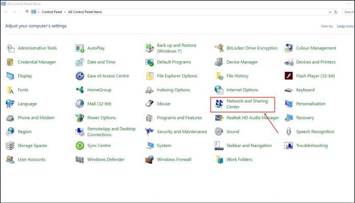 1. No seu computador Windows, navegue no Painel de Controle e escolha Centro de Rede e Compartilhamento.