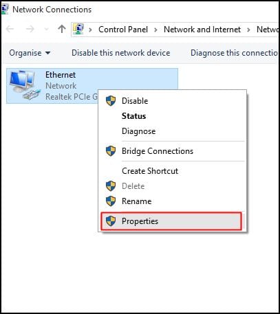 3. Agora, você verá sua rede conectada. Clique com o botão direito do mouse na rede conectada e clique em ‘Propriedades’
