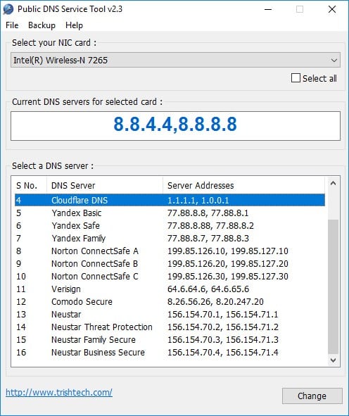 4. Agora você precisa selecionar o servidor DNS de sua escolha, como Google DNS ou OpenDNS, e clicar em’Alterar‘