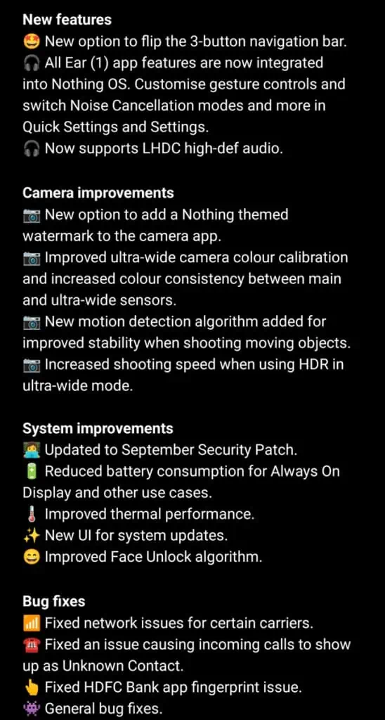 Esta atualização está marcada como Nothing OS 1.1.4 e todas as alterações estão listadas no changelog da empresa. Então, vamos ver o que há de novo. Vamos começar com os novos recursos primeiro, pois eles também estão incluídos aqui.