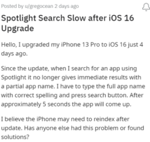 Antes da atualização do iOS 16, uma pesquisa do Spotlight por aplicativos e vários recursos era bastante instantânea, mas uma pesquisa típica agora leva mais de 5 segundos para carregar resultados.