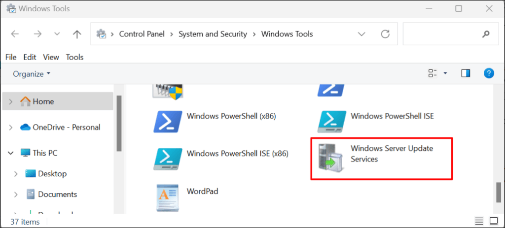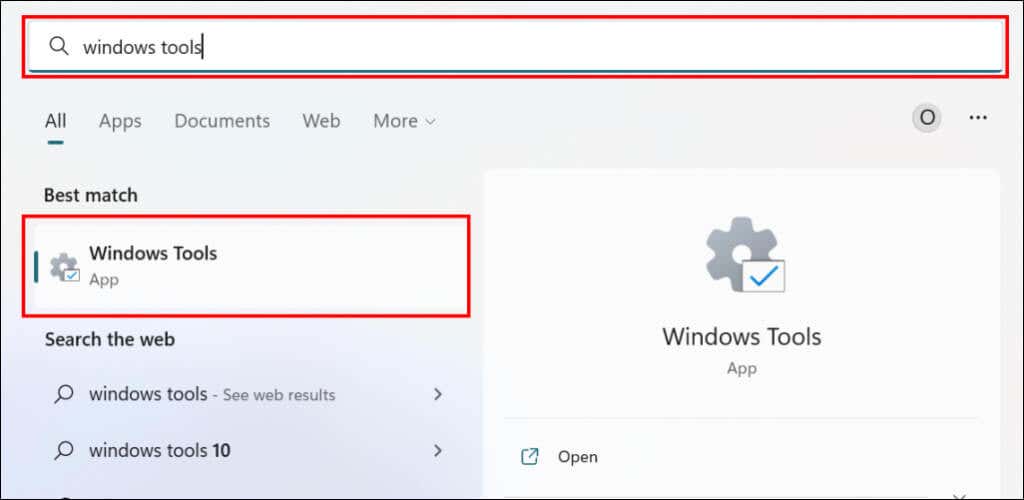 Abra o menu Iniciar, digite ferramentas do Windows na barra de pesquisa e abra o aplicativo Ferramentas do Windows. Localize e clique duas vezes no RSAT que deseja executar.