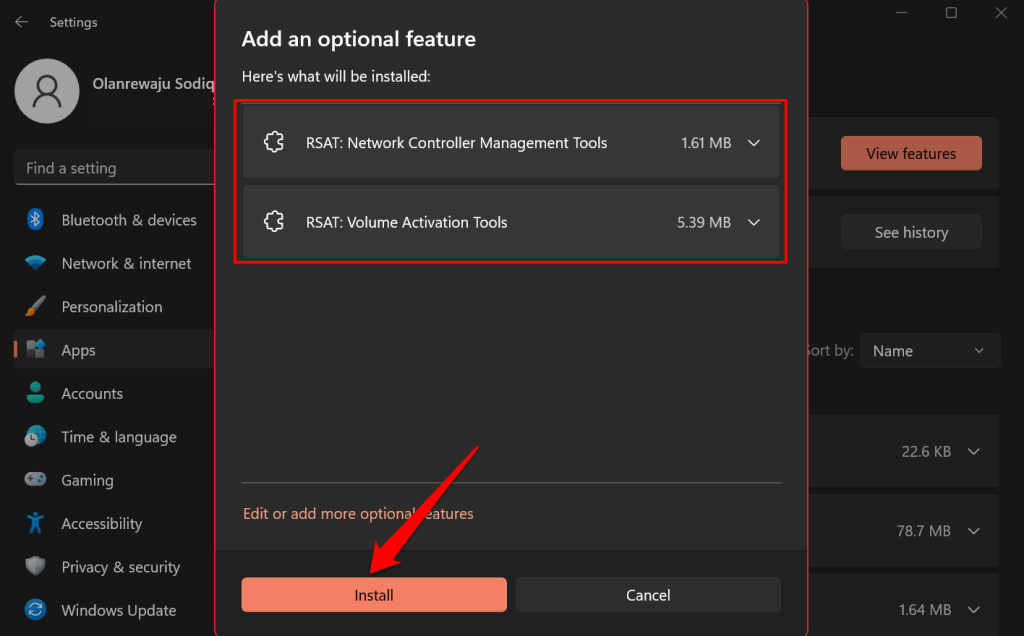 Siga as etapas abaixo para instalar o RSAT como um recurso opcional no Windows 11.