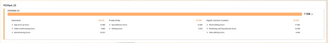 O PCMark é outro benchmark popular focado no trabalho diário e em aplicativos de produtividade. Uma boa pontuação aqui significa que sua máquina deve ser capaz de lidar com sua carga de trabalho diária sem problemas.