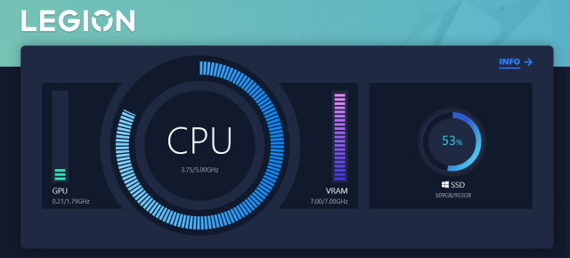 Como outros softwares de monitoramento de hardware, o Vantage permite monitorar seu uso de CPU, GPU e VRAM rapidamente. Portanto, se algum aplicativo em seu laptop usar recursos extras, você saberá instantaneamente. No entanto, uma grande parte do Vantage também são seus controles centrados em jogos e foi por isso que eu gostei.