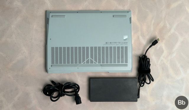 O painel de E/S traseiro do Legion 5i Pro inclui duas portas 3.2 Gen 1 USB-A (uma das quais está sempre ligada), uma porta 3.2 Gen 2 USB-C ( para dados, carregamento PD de 135W e DP 1.4), uma porta HDMI (até 8K 60Hz) junto com a porta de entrada para o enorme carregador de 300W.