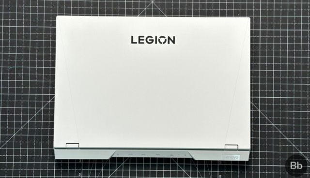 O painel superior do Lenovo Legion 5i Pro é bastante simples. Em vez do logotipo brilhante encontrado no Legion 5 Pro 2021, este laptop possui uma etiqueta Legion brilhante, que parece legal. É ainda cercado por linhas inclinadas duplas que correm paralelas umas às outras no final do painel. A metade inferior do painel também se conecta ao painel de E/S, que possui etiquetas práticas para facilitar o reconhecimento.