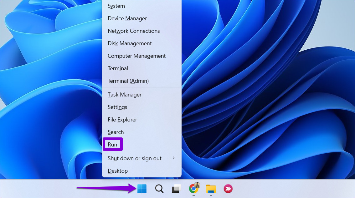 Etapa 1: Clique com o botão direito do mouse no ícone Iniciar e selecione Executar na lista.