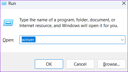 Etapa 2: Digite winver na caixa de texto e pressione Enter.