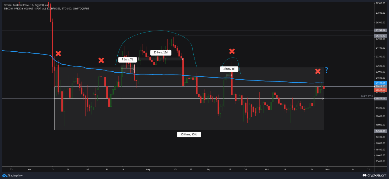 Como apontado por um analista em um CryptoQuant post, o BTC passou um total de 138 dias abaixo do preço realizado até agora desde junho deste ano.