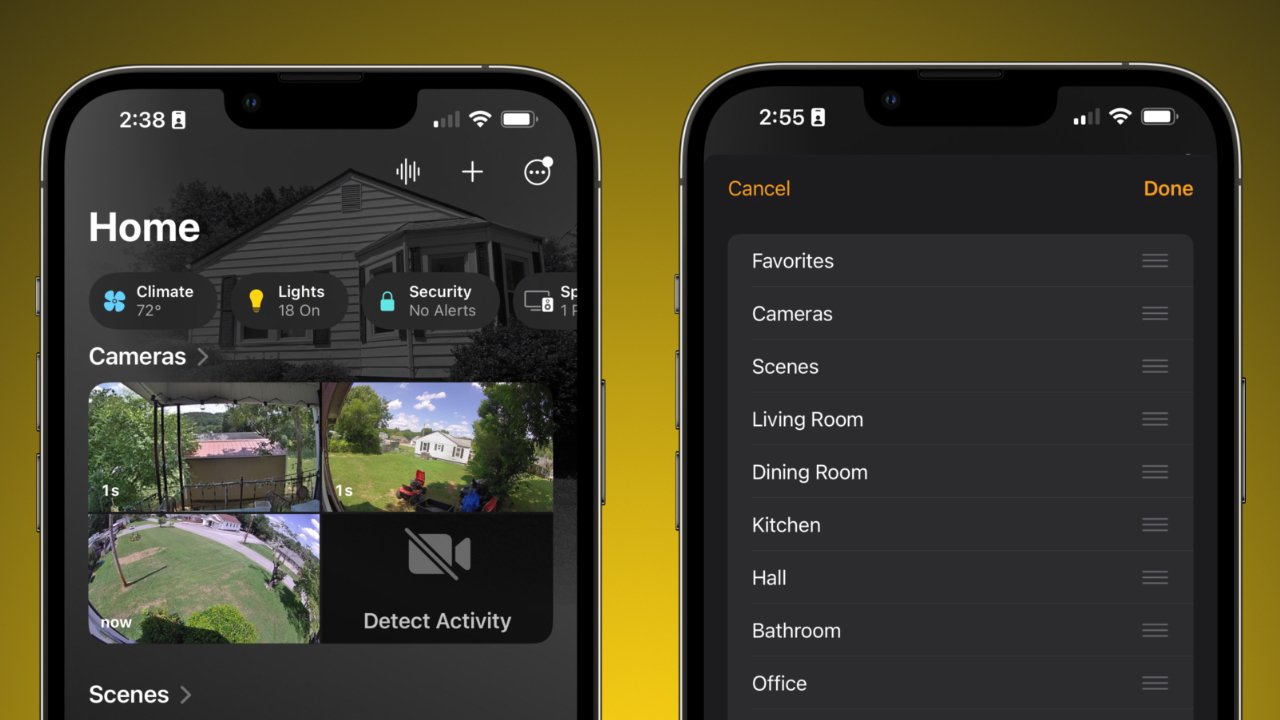 A nova guia Início é altamente personalizável, permitindo que os usuários criem o”controle de missão”ideal para sua casa inteligente. Todos os dispositivos, controles, sensores e salas aparecem na guia Início. Ele é dividido em diferentes seções, começando com Favoritos, Câmeras e Cenas, seguidas por uma seção para cada sala.