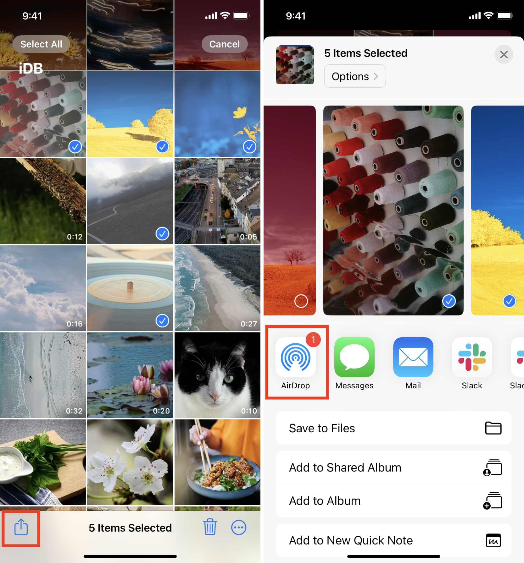 5) Selecione as imagens e vídeos segurando a tecla Command e clicando neles.