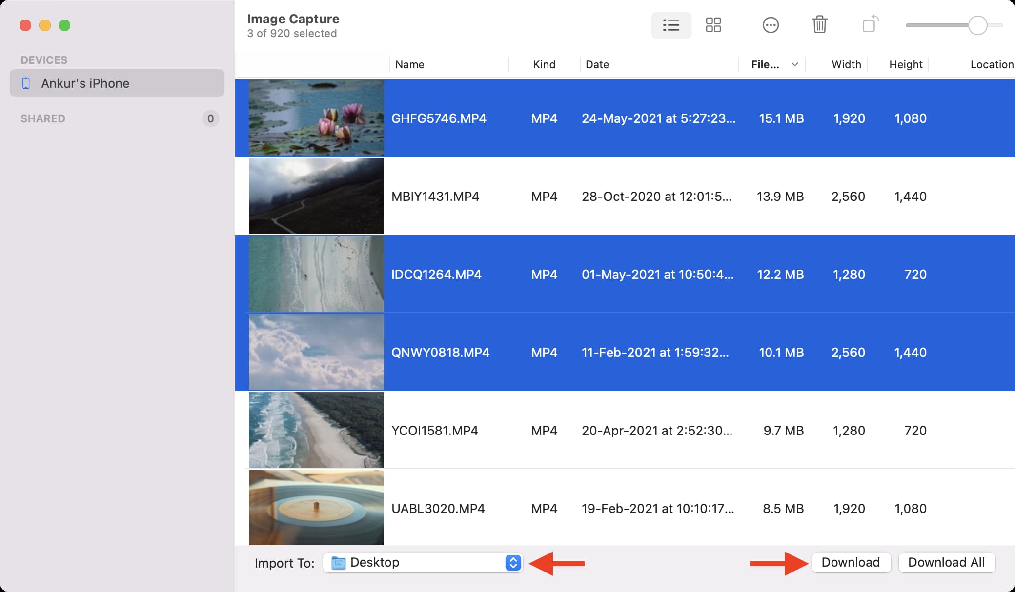 6) Uma vez selecionado, clique em Download. O Image Capture transferirá as fotos e vídeos do seu iPhone ou iPad para o Mac.