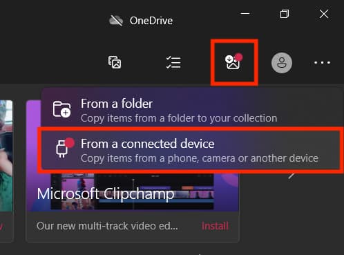 5) Clique no menu suspenso Importar para em na parte superior e escolha um álbum existente ou crie um novo para o qual deseja importar as fotos e os vídeos.