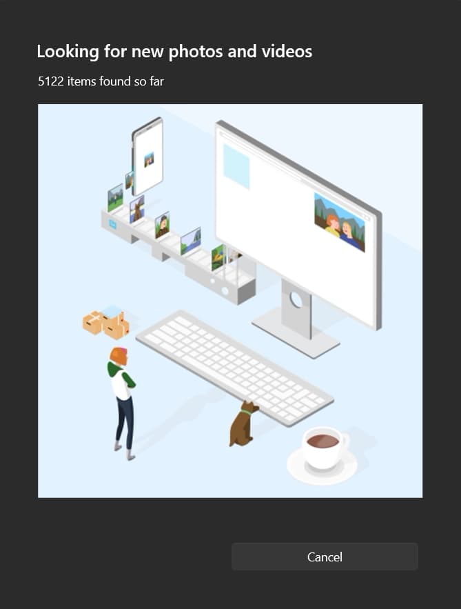 6) O PC com Windows agora procurará suas fotos e vídeos do iPhone. Pode demorar um pouco.