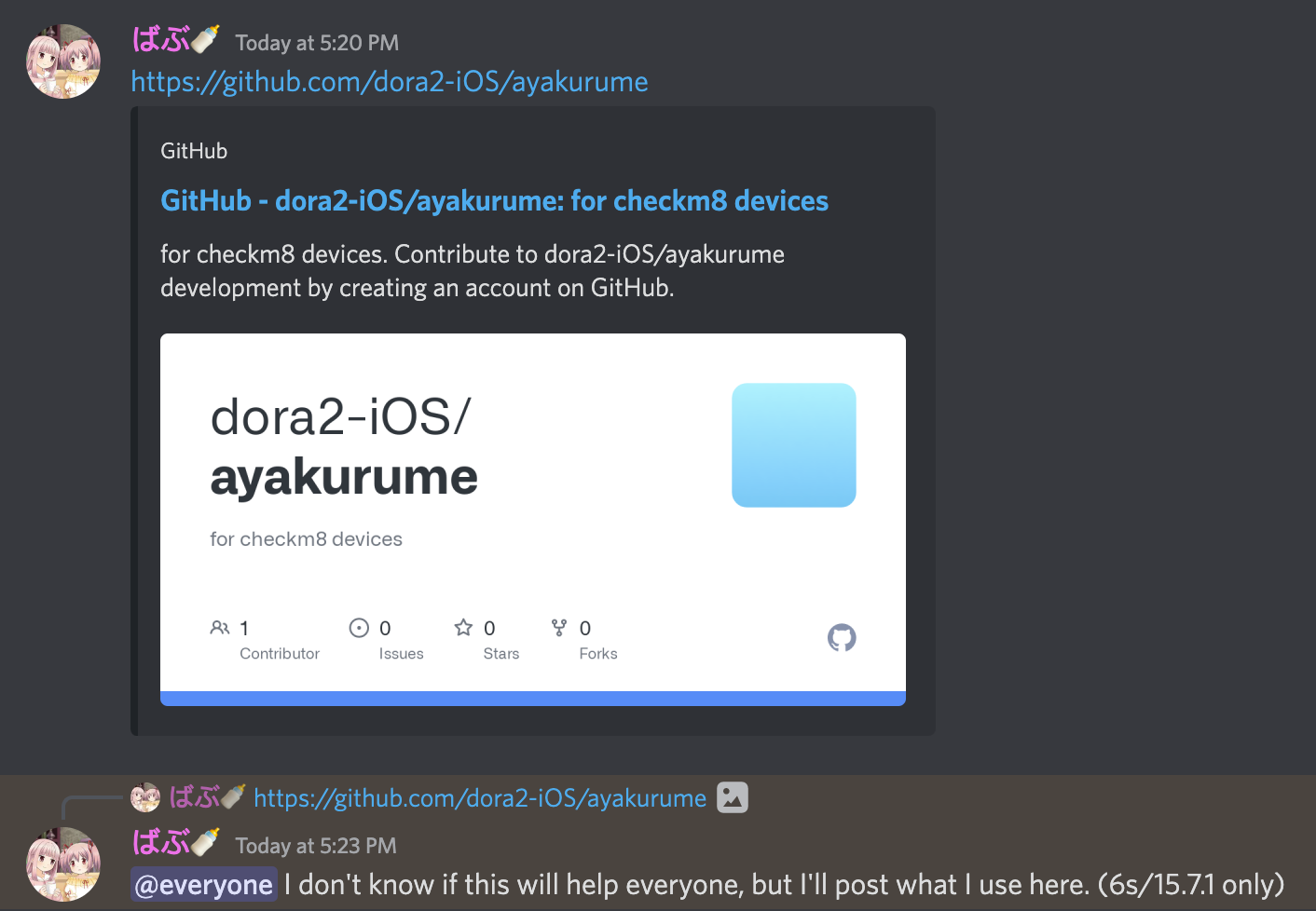 A ferramenta de jailbreak ayakuruke se junta ao palera1n para se tornar a segunda ferramenta de jailbreak baseada em checkm8 disponível publicamente para iOS 15, mas vale a pena notar que o palera1n suporta mais combinações de dispositivos e firmware e que ainda suporta injeção de ajustes no iOS 15.3.5 e abaixo.