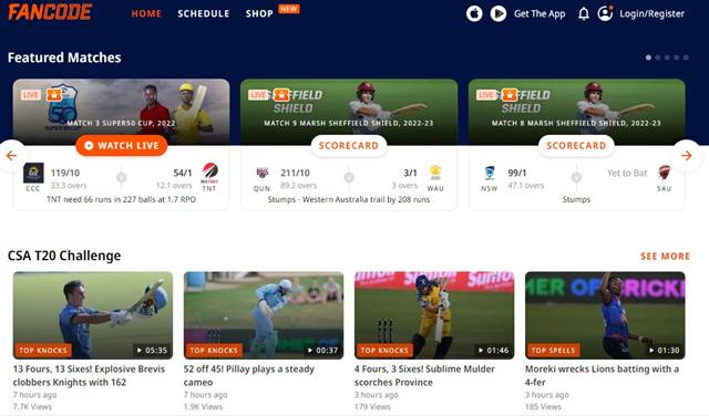 Fancode é um site de streaming de críquete relativamente novo na lista que permite assistir partidas de críquete ao vivo forte>. Embora seja um site premium de streaming de críquete, seus planos têm bons preços e são acessíveis.