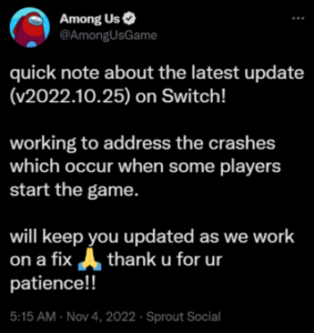 Felizmente, o problema em que o Among Us está travando no Nintendo Switch foi reconhecido pelos desenvolvedores.