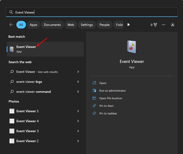 1. Primeiro, clique na pesquisa do Windows e digite Visualizador de eventos. Em seguida, abra o aplicativo Event Viewer na lista de opções disponíveis.