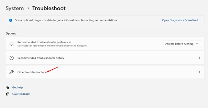 2. Na tela Solução de problemas, clique em Outras soluções de problemas.
