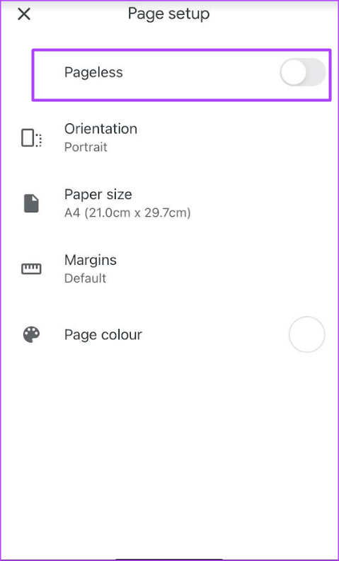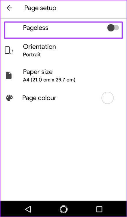 Como habilitar o recurso sem páginas no Google Docs no Android
