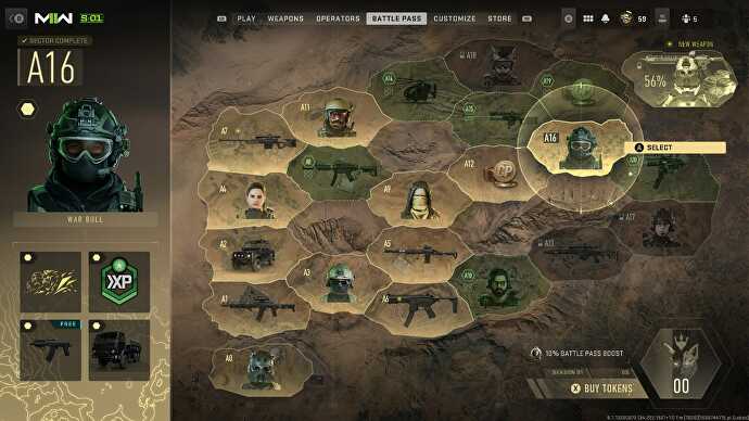 E – é importante lembrar – esta é apenas a Temporada 1. A primeira é Warzone 2.0 e Modern Warfare 2 está tendo isso. Tal como está, existem 20 “setores de combate”, cada um com cinco recompensas. Há também um setor de bônus (marcado no mapa como A0) que desbloqueia cinco recompensas adicionais (incluindo o principal operador da primeira temporada, Zeus) se você comprar o passe de batalha. Você pode jogar de graça, mas suas faixas de recompensa são severamente limitadas se você optar por fazê-lo; isso é normal em qualquer jogo configurado com um passe de batalha, no entanto.