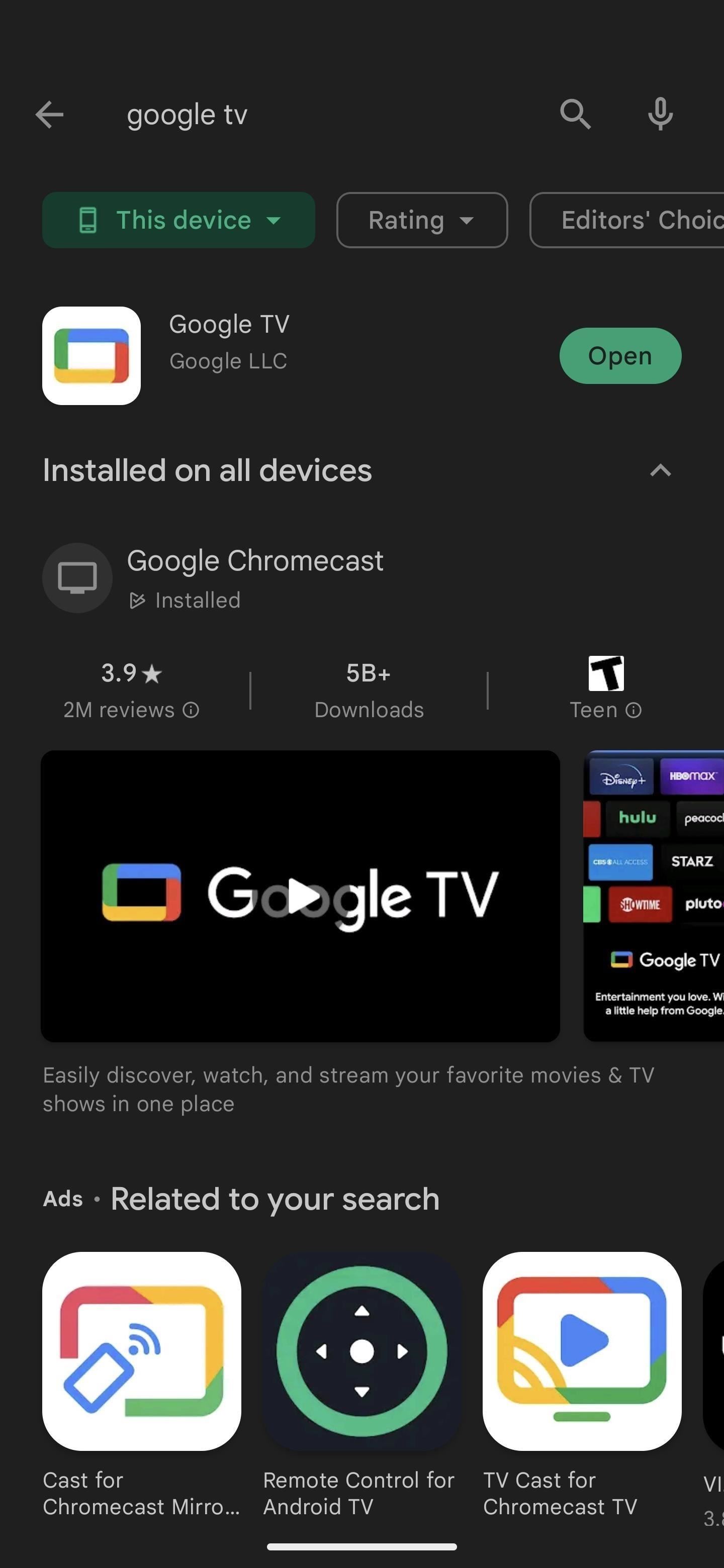 A renomeação do Google Play Filmes e TV para Google TV resultou no agrupamento da funcionalidade de controle remoto no aplicativo de mídia. Instale ou atualize-o nos links abaixo. Observe que o aplicativo autônomo anterior, Android TV Remote Service, ainda está listado no Google Play, mas não é mais compatível com nenhum dispositivo.