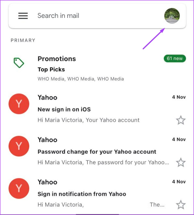 Etapa 2: toque na sua foto de perfil/avatar no canto superior direito do aplicativo.