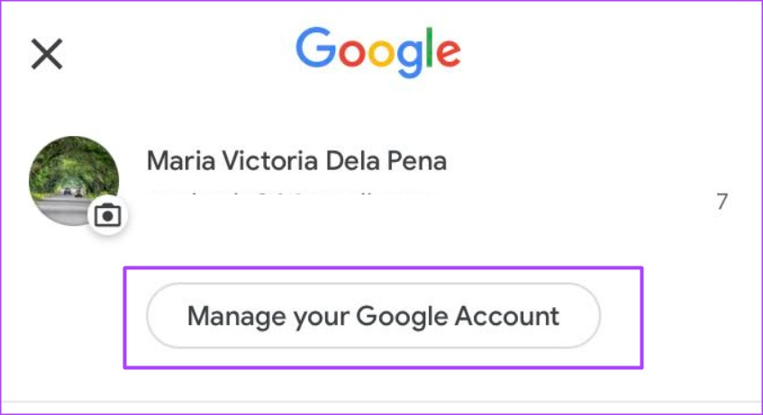 Etapa 3: Toque em’Gerenciar sua conta do Google’.