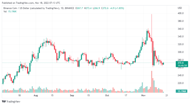 O preço do BNB está atualmente pairando em $ 272. | Fonte: gráfico de preços BNBUSD de TradingView.com