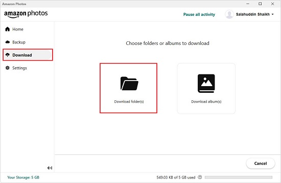 2. Abra seu aplicativo Amazon Photos, faça login em sua conta e clique em’Download’no painel de navegação à esquerda.