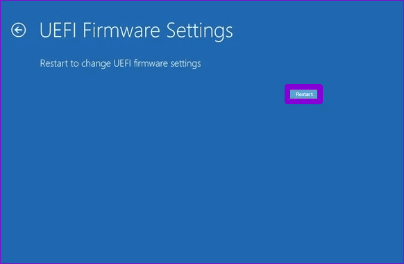 Etapa 7: Clique em Reiniciar. Seu PC inicializará no BIOS. Observe que a tela de configurações pode diferir com base no fabricante e no modelo do computador.