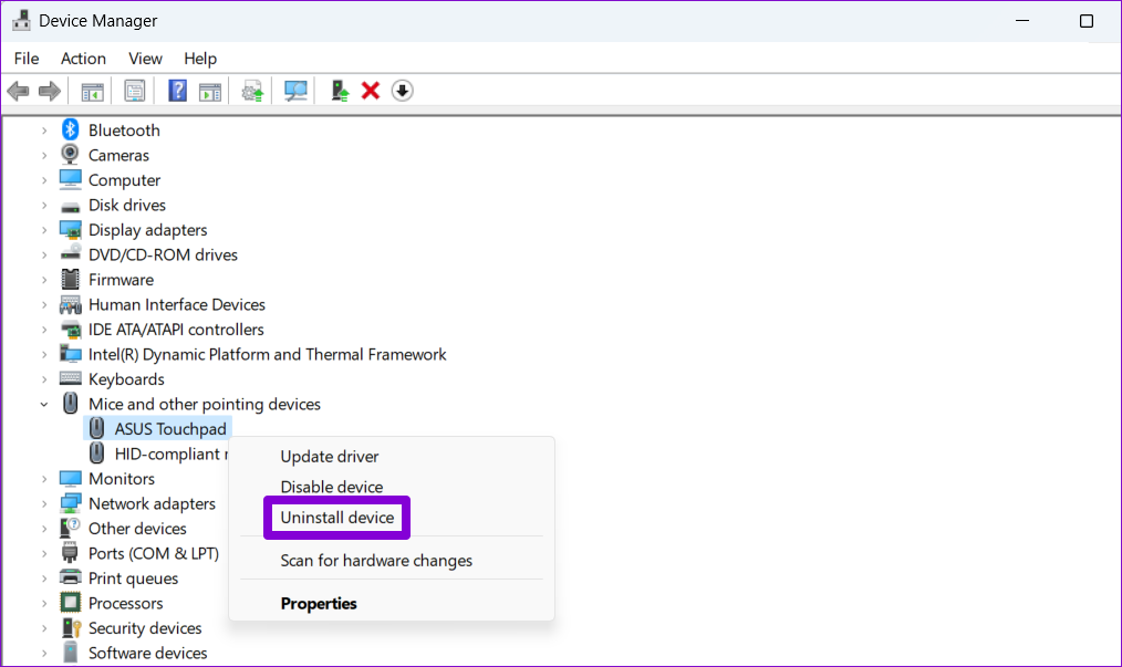 Se a atualização do driver não ajudar, o driver do touchpad pode estar corrompido. Nesse caso, desinstale o driver usando o Gerenciador de dispositivos e reinicie o PC. O Windows 11 instalará automaticamente o driver ausente durante a inicialização.