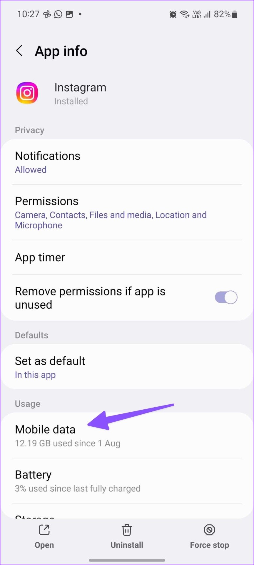 Por exemplo, se você frequentemente enfrenta atrasos nas notificações do Instagram, siga as etapas abaixo para fornecer acesso irrestrito.