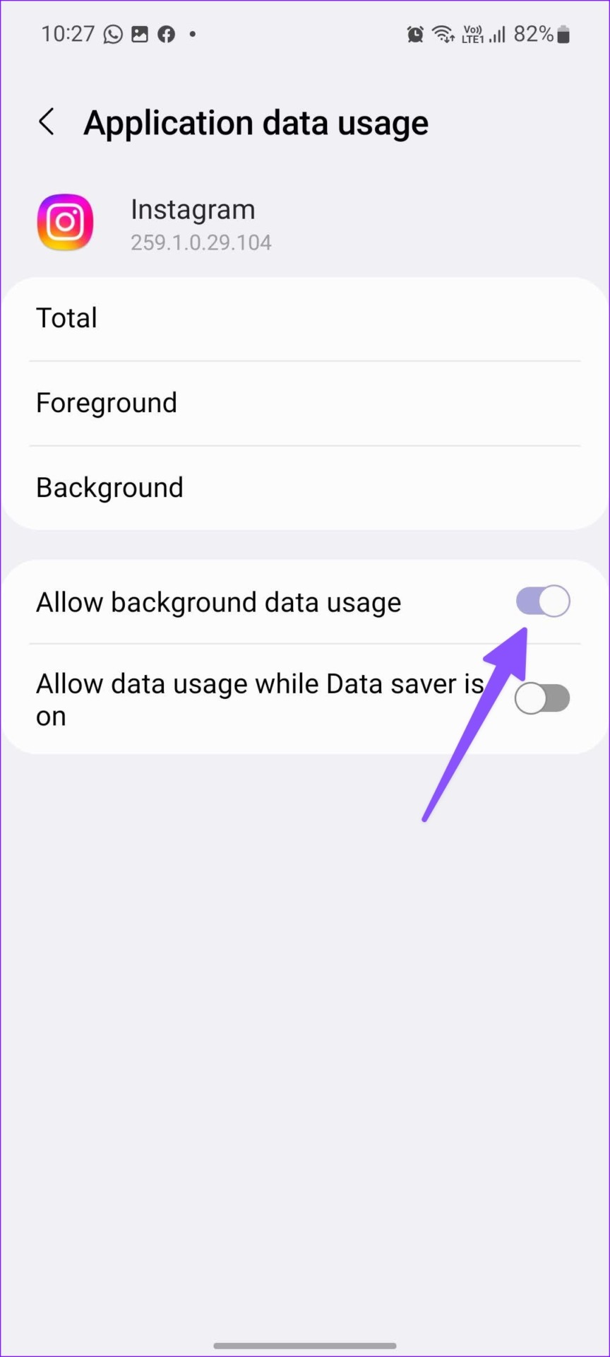 Etapa 3: Ative a opção’Permitir uso de dados em segundo plano’.