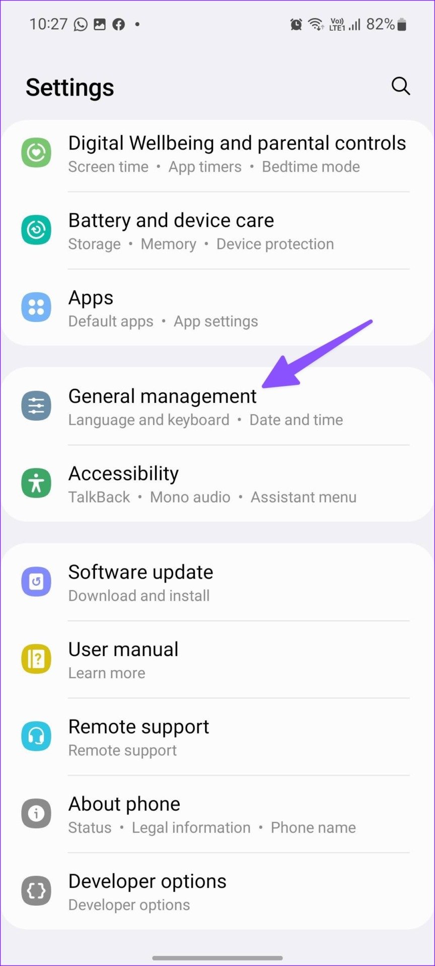 Etapa 1: Abra o aplicativo Configurações e role até’Gerenciamento geral’.