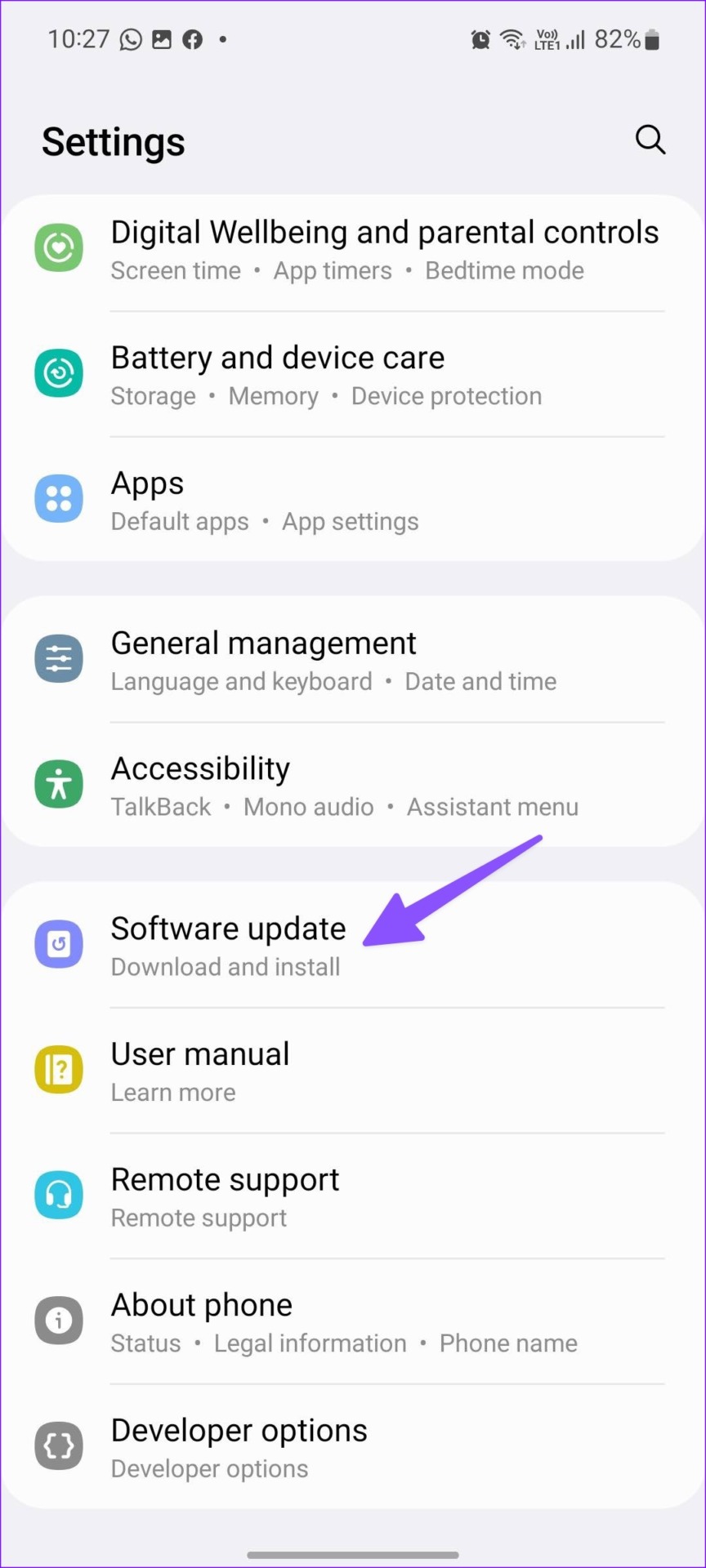 A Samsung lança novas atualizações de software para adicionar novos recursos e corrigir bugs. As notificações atrasadas podem ser causadas por uma compilação One UI desatualizada em seu telefone Samsung. É uma boa ideia instalar atualizações pendentes e tentar novamente.