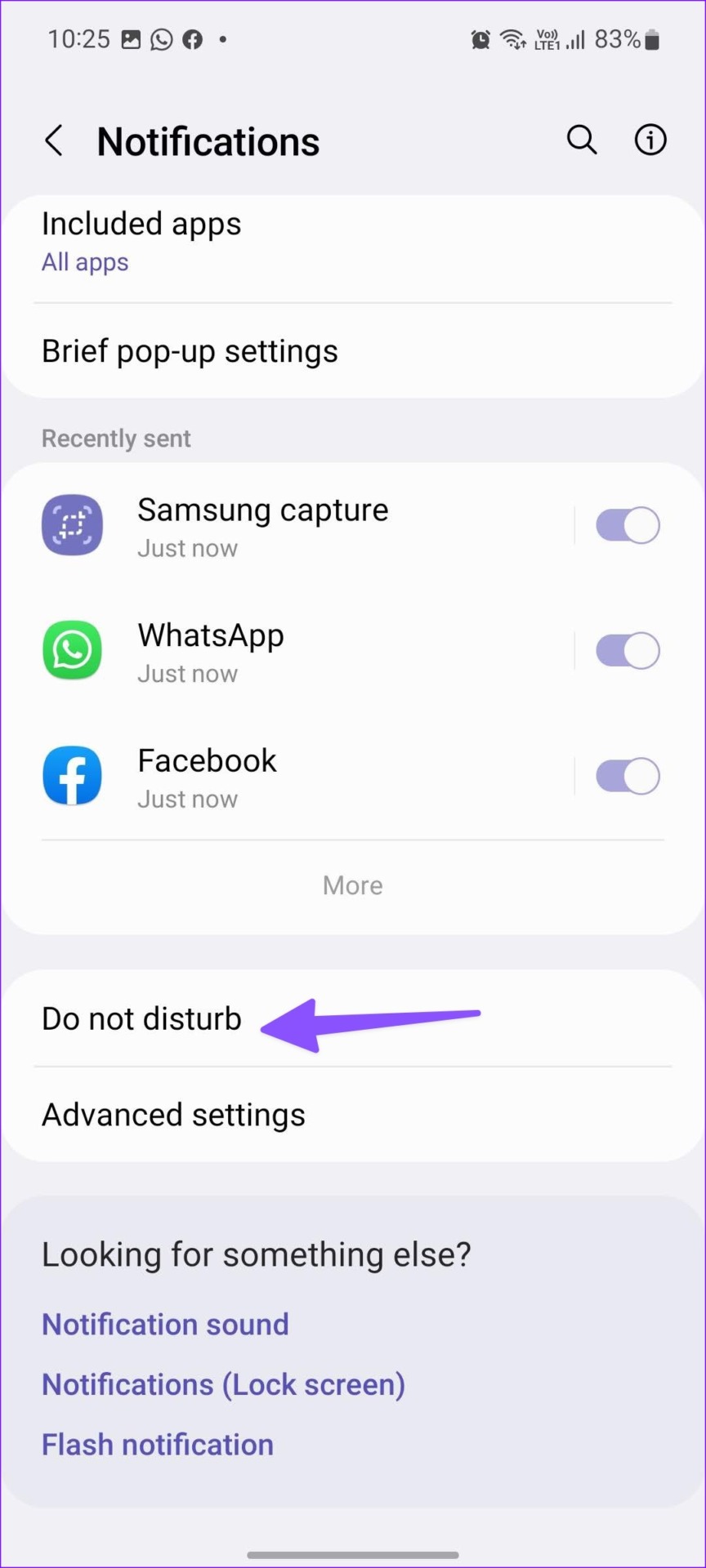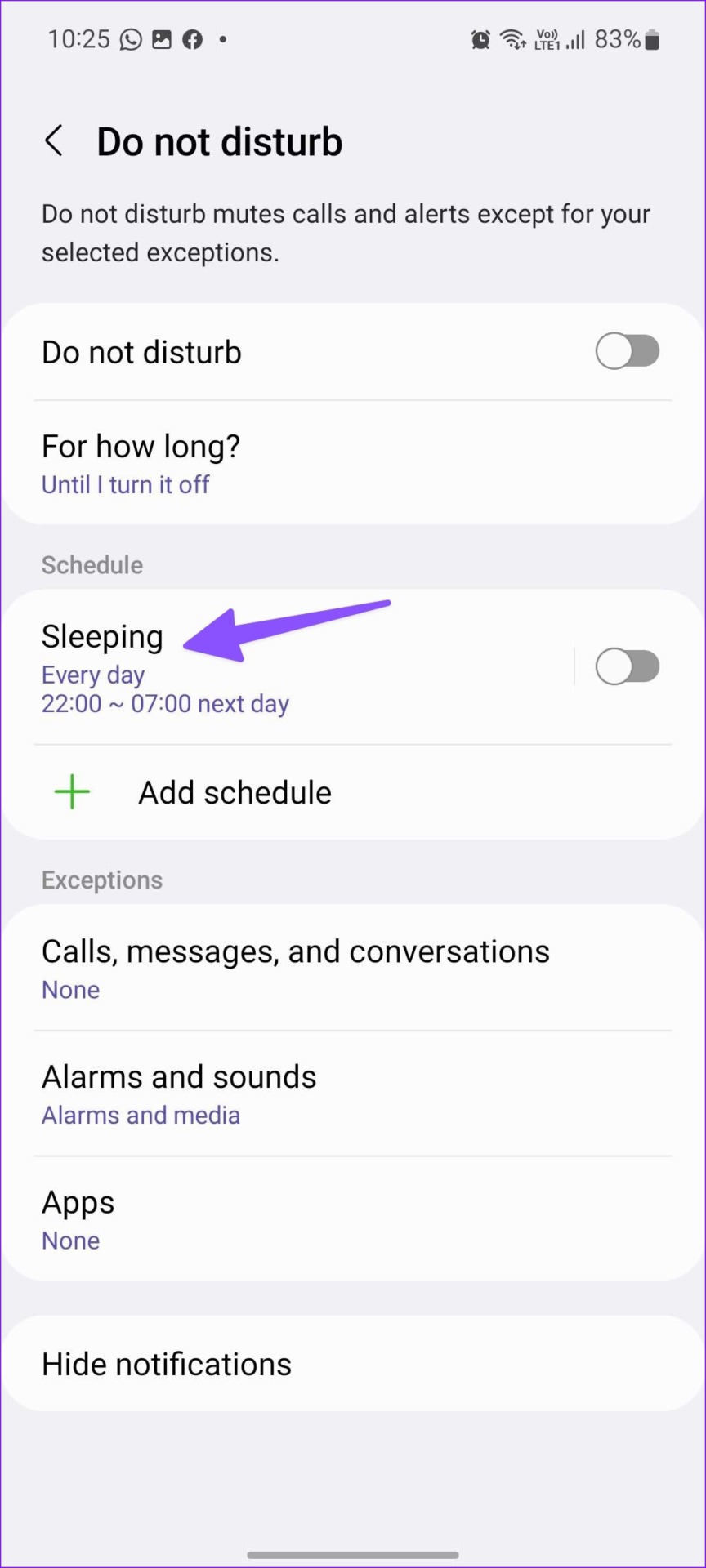 Você automatizou o modo DND (não perturbe) no seu telefone Samsung Galaxy? O sistema irá habilitá-lo em um horário definido e pausar as notificações. Após um tempo específico, ele desligará o DND e enviará alertas. Você precisará ir para Configurações para verificar se o recurso está ativo e, se estiver, desative-o.