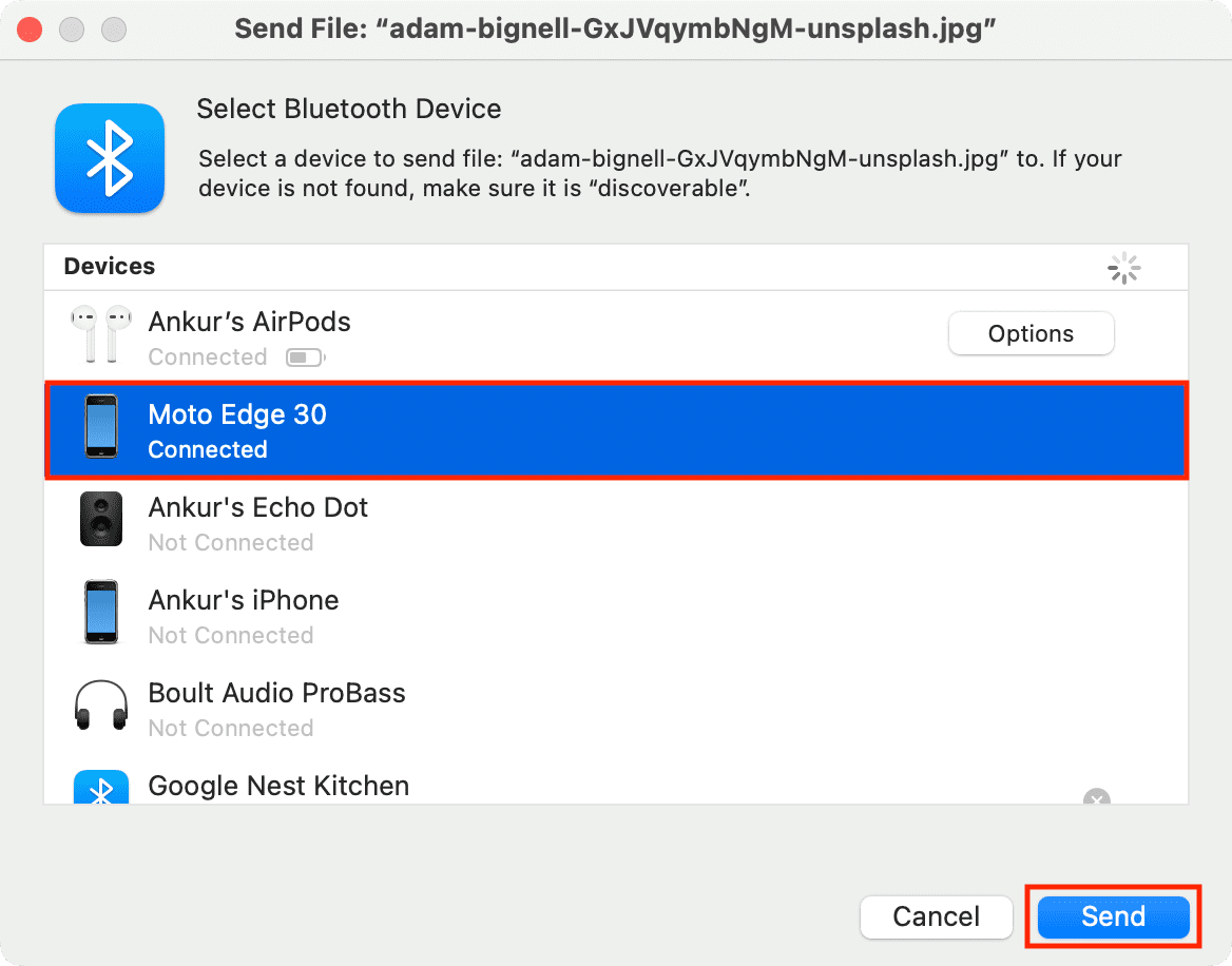 5) Agora você emparelhou com sucesso seu Mac e telefone Android via Bluetooth. Esse emparelhamento ficará para o futuro, facilitando o envio e recebimento de arquivos. Obviamente, você terá que seguir as etapas acima novamente se algum dia esquecer/remover seu Mac ou telefone Android de suas respectivas configurações de Bluetooth ou redefinir o módulo Bluetooth do seu Mac. Agora: