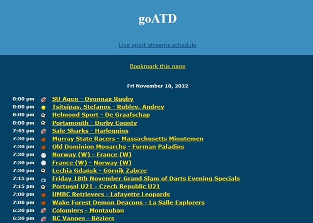 O goATD é um dos melhores sites de streaming de esportes da lista, que todo amante de esportes gostaria de visitar. O site tem uma interface de usuário limpa, abrangendo basquete, golfe, tênis e futebol.