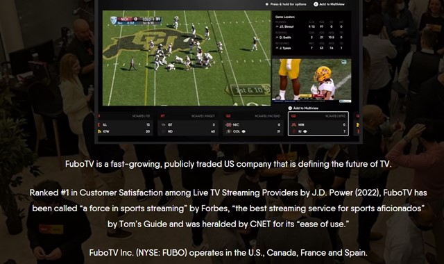 Com mais de um milhão de assinantes, a fuboTV é facilmente o melhor serviço de streaming de esportes ao vivo. O aplicativo se proclama uma empresa norte-americana de capital aberto e em rápido crescimento, destinada a moldar o futuro da TV.