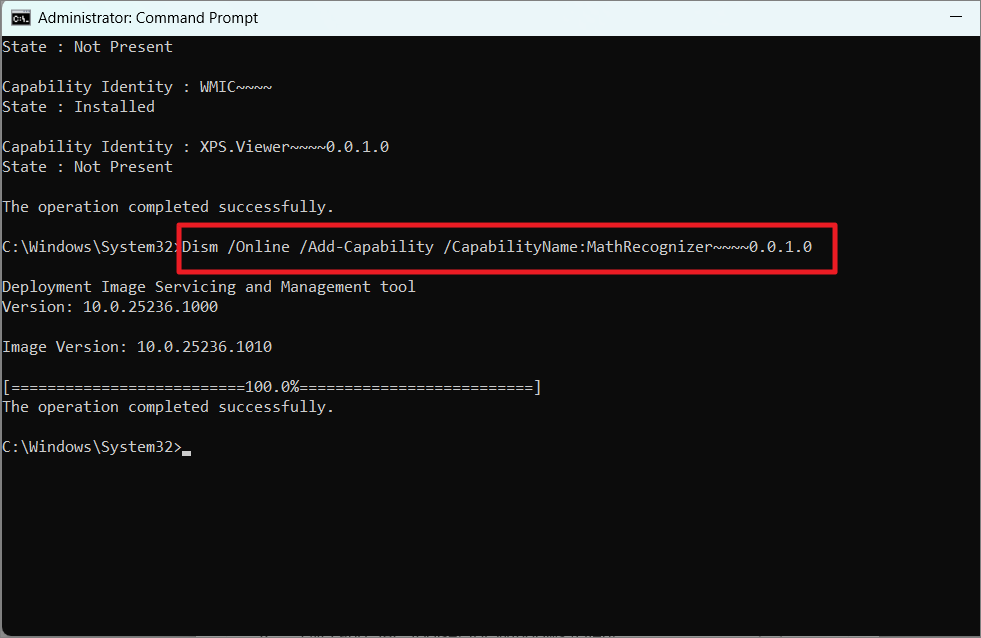 Dism/Online/Add-Capability/CapabilityName:MathRecognizer~~~~0.0.1.0