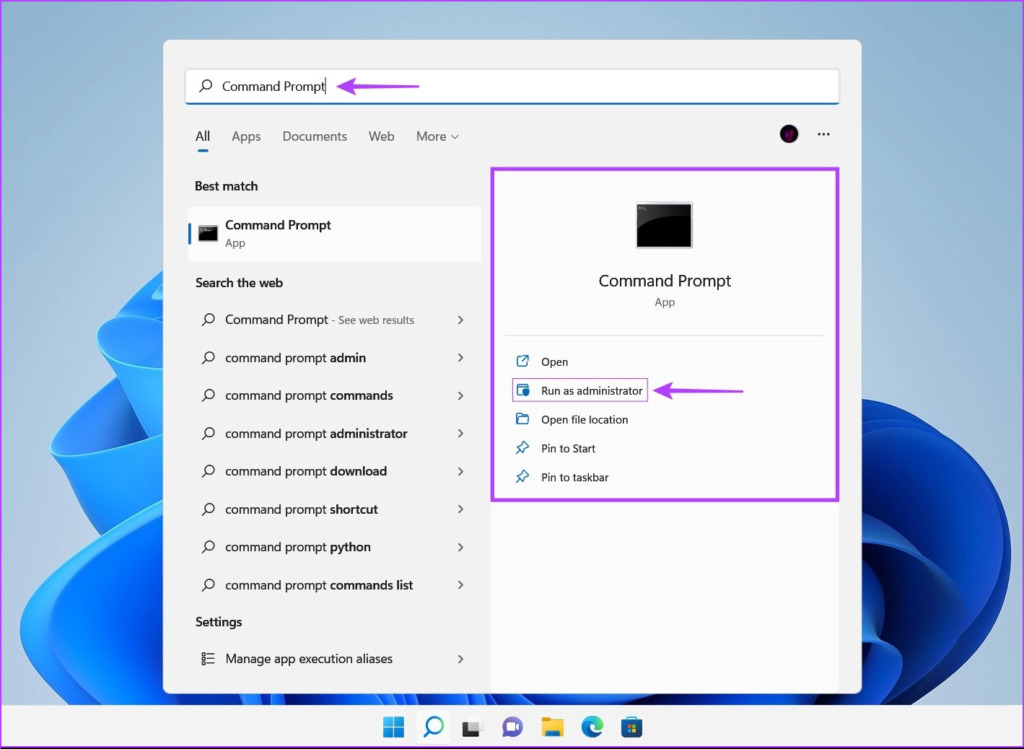 Etapa 1: Pressione as teclas Windows + S e digite Prompt de comando. Em seguida, nos resultados do prompt de comando, clique em Executar como administrador.