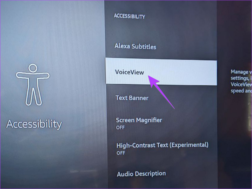 Por exemplo, vá para Configurações > Acessibilidade > Visualização de voz no Fire TV Stick e desligue-o na próxima tela.