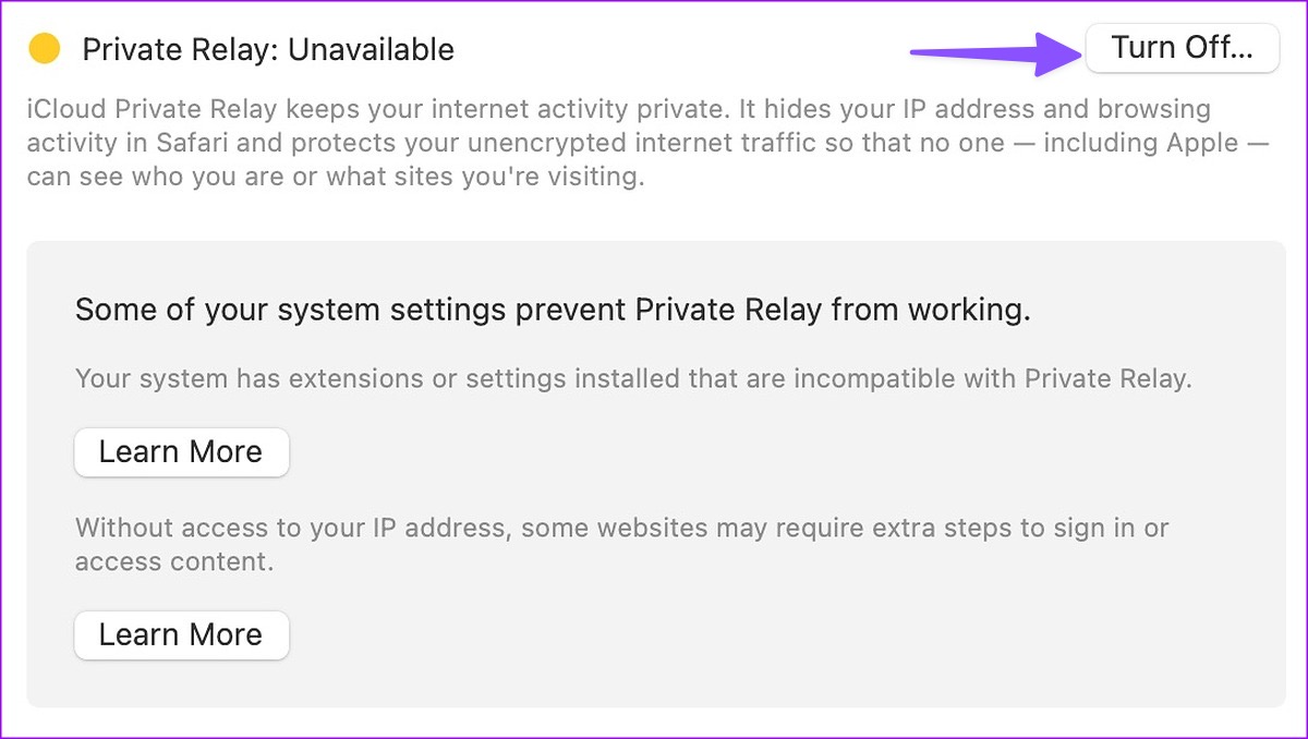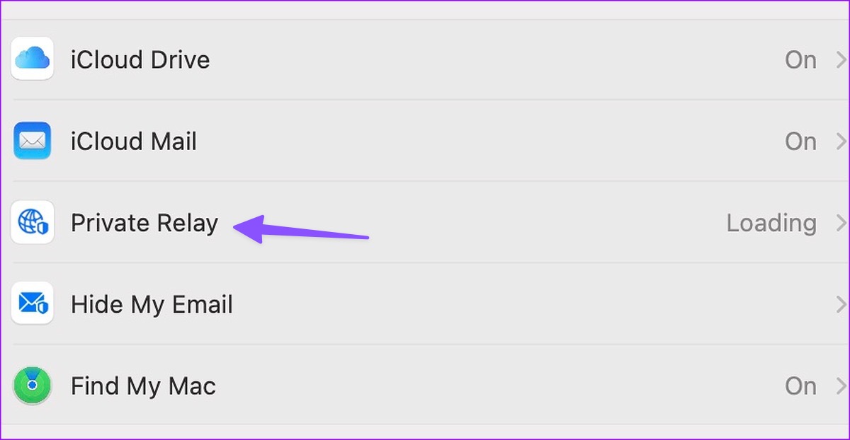 Etapa 5: Desligue o Private Relay no menu a seguir.