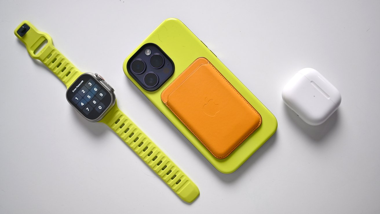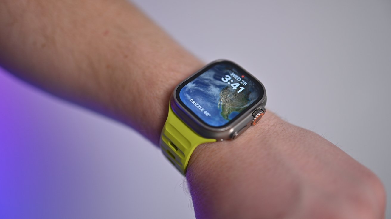 Tentamos com nossos outros relógios, mas usamos principalmente com nosso novo Apple Watch Ultra de 49 mm. Com sua cor amarela brilhante, fica impressionante com o robusto Apple Watch Ultra.