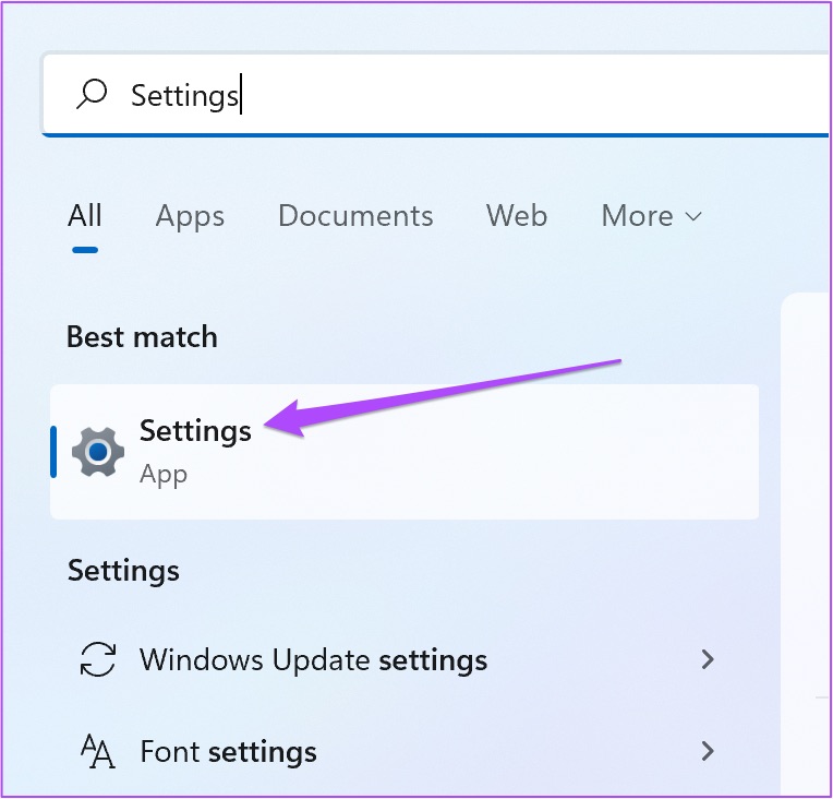 Etapa 1: Clique no ícone Iniciar em seu computador com Windows 11, digite Configurações e pressione Enter.