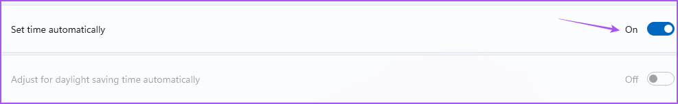 Etapa 4: marque o botão ao lado de Definir hora ativado automaticamente. Caso contrário, ative a alternância ao lado do recurso.